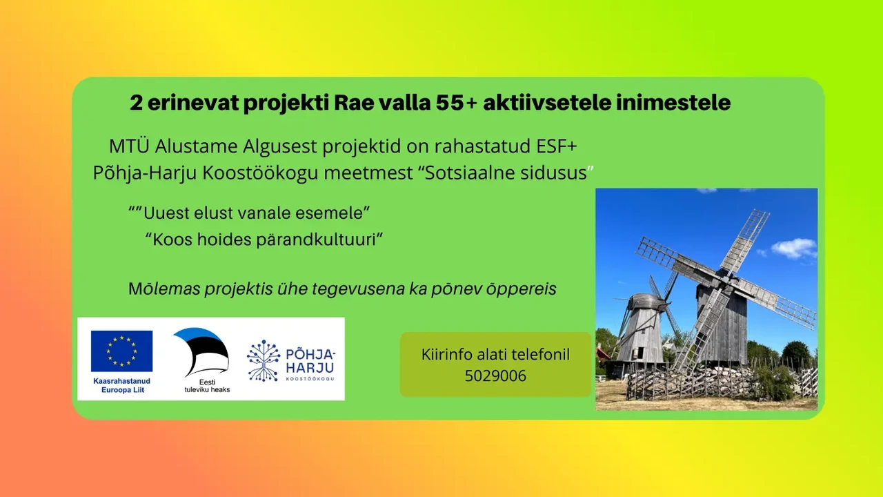 Mõlemad projektid on suunatud Rae valla elanike registris olevatele 55+ vanuses inimestele.