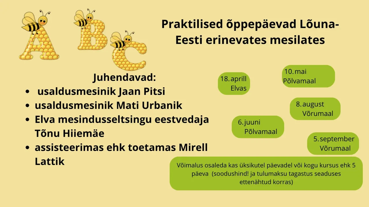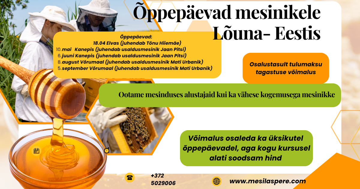 Koolitusel käsitletakse majandamist nii korpus- kui ka lamavtarudes. Kui valid kogu õppetsükli, siis on osalustasuks 150 € ja sellelt tulumaksu tagastus seaduses ettenähtud korras.